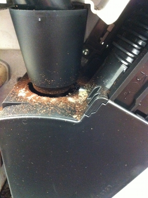 Kaffeemehl, das sich in bestimmten Bereichen der Brüheinheit ablagert, um organische Substanzen handelt, die in Verbindung mit der Temperatur und der hohen Luftfeuchtigkeit im Inneren eines